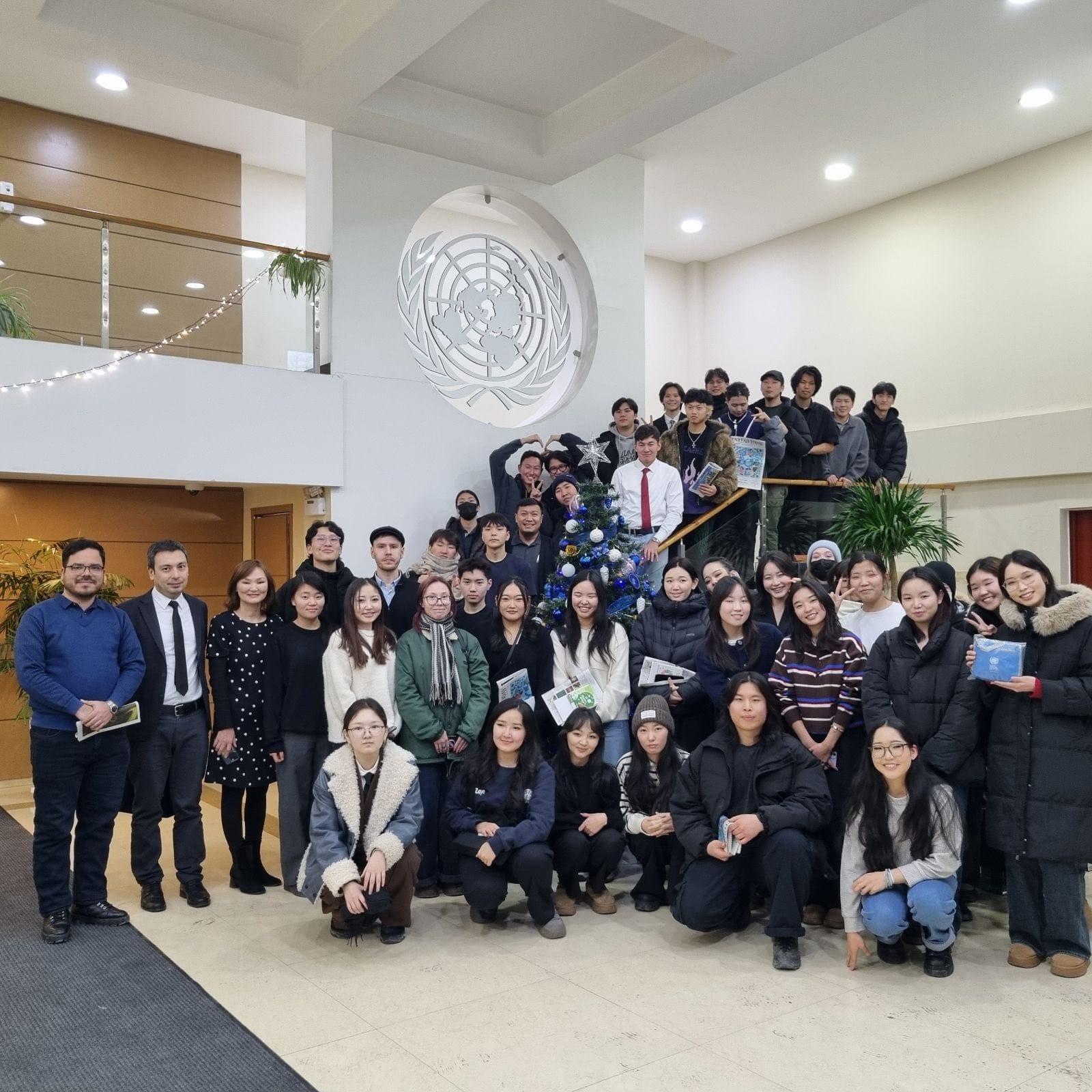 Mongolia International University (MIU)-н Олон улс судлал, харилцааны сургуулийн оюутнууд 12 дугаар сарын 4-ний өдөр НҮБ-ын байранд хийсэн танилцах аяллаа амжилттай болж өнгөрлөө. Энэхүү танилцах аяллын хүрээнд Монгол дахь залуучуудын оролцоо, тогтвортой хөгжлийн ойлголтын талаар НҮБЗЗХ-ны гишүүн Г.Энхзаяа дэлгэрэнгүй ярилцаж, бидний хэрэгжүүлж буй үйл ажиллагааг танилцууллаа. Мөн НҮБ-ын талаарх хөгжилтэй асуулт хариултын тэмцээн болон интерактив воркшопыг НҮБЗЗХ-ны гишүүн Б.Золзаяатай хамтран зохион байгуулсан юм.