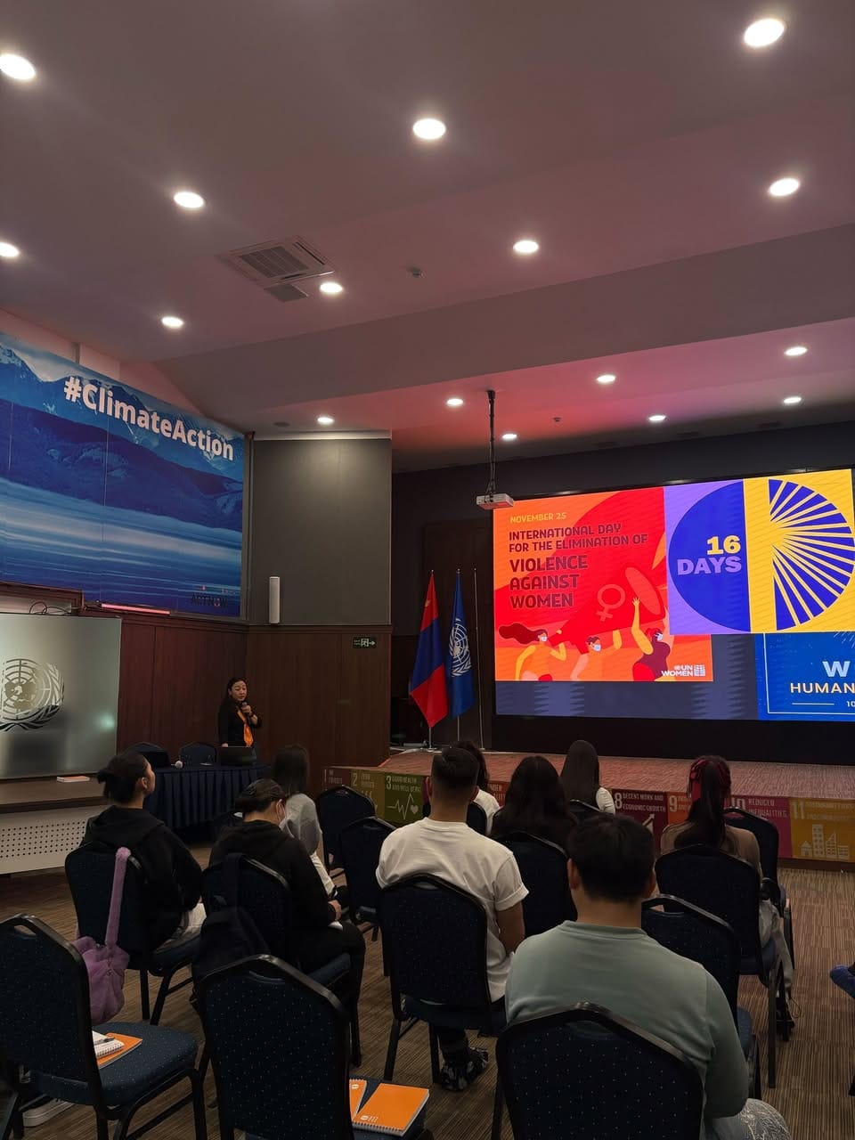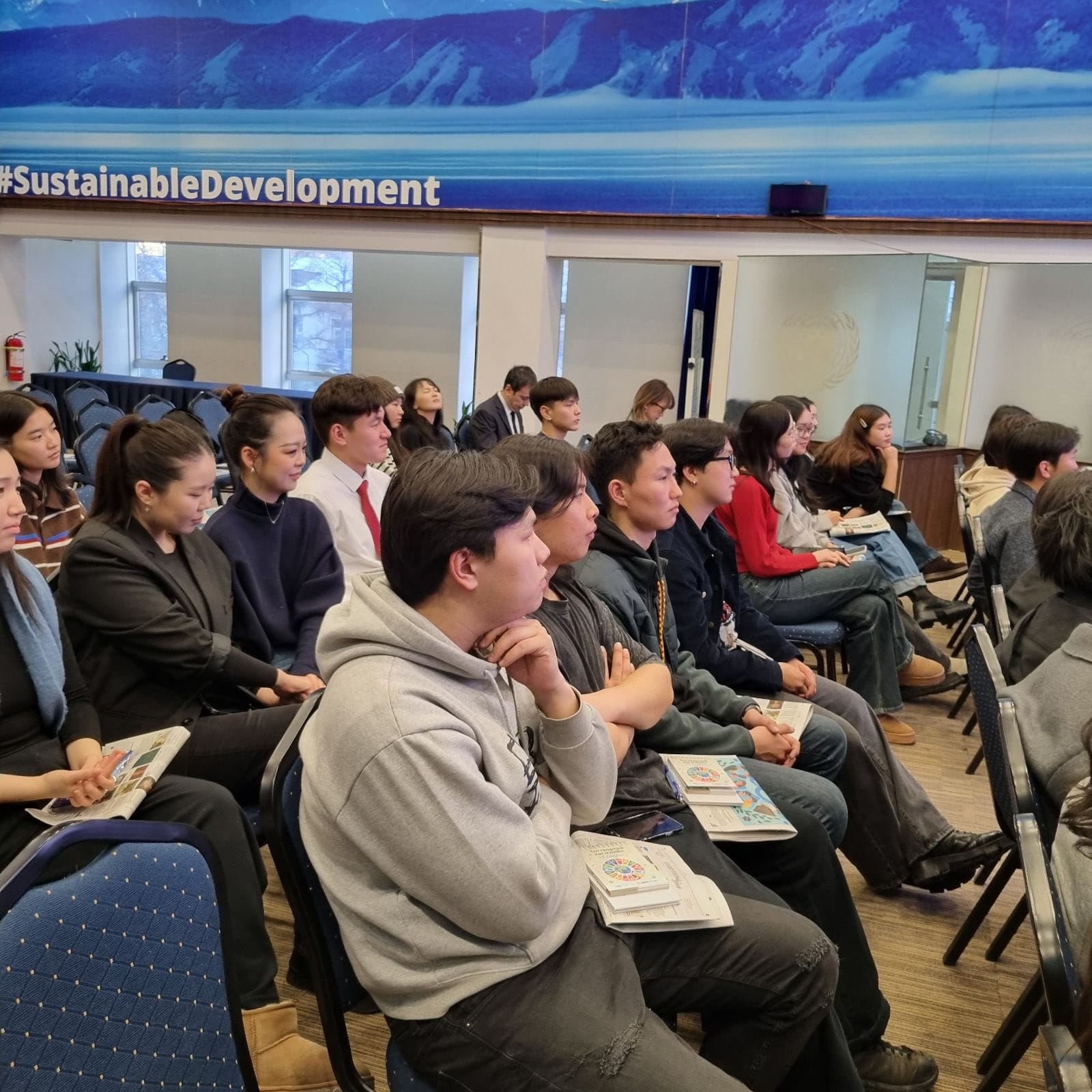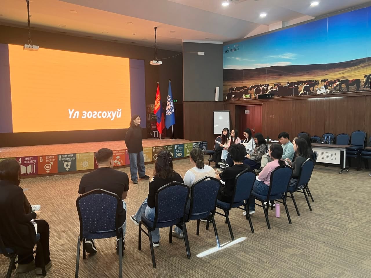 Students from the School of International Studies and Relations at Mongolia International University visited the UN House on December 4. During the visit, UNYAP member G. Enkhzayaa spoke about youth participation in Mongolia and the concept of sustainable development, and introduced the activities carried out by UNYAP. The program also included a UN-themed quiz and an interactive workshop, which were organized together with UNYAP member B. Zolzaya to encourage active participation among the students.